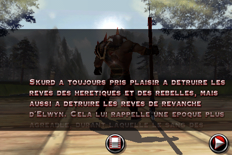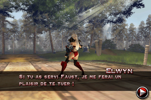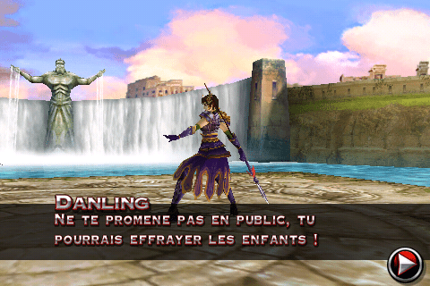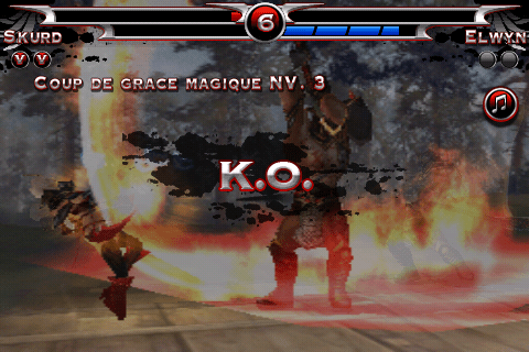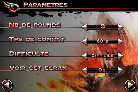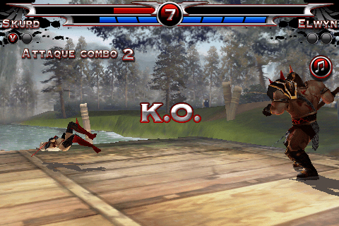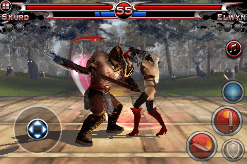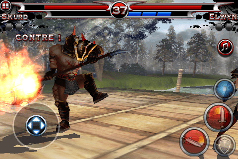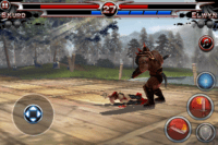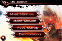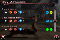 Le jeu peut se contrôler de deux manières : à l’aide d’un traditionnel joystick virtuel (le plus simple), ou à l’aide de mouvements sur l’écran qui déclencheront des attaques. Vous faîtes glisser le doigt de haut en bas, et vous réaliser une attaque haute, etc … Pas très facile à prendre en main, et très difficile d’enchaîner les combos avec ce type de commandes. Mais néanmoins, le système serait à améliorer, il est tout de même bien pensé.