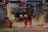 A chaque coup porté, reçu ou paré, une jauge bleue de pouvoir se remplit. Elle est divisée en 4 éléments correspondant à 3 niveaux d’attaques magiques. Pour déclencher une attaque magique, il suffit de maintenir plus ou moins longtemps le bouton de magie. Une simple pression (1 quart de la barre se vide) et vous faites une attaque magique de niveau 1 (faible puissance). Une pression plus longue et vous réalisez une attaque magique de niveau 2 (la moitié de la barre de magie se vide). Une pression jusqu’au chargement d’une animation de jeu, et vous déclenchez une attaque de niveau 3 (maximum de dégâts, la barre se vide entièrement) qui cause de gros dégâts à l’adversaire.