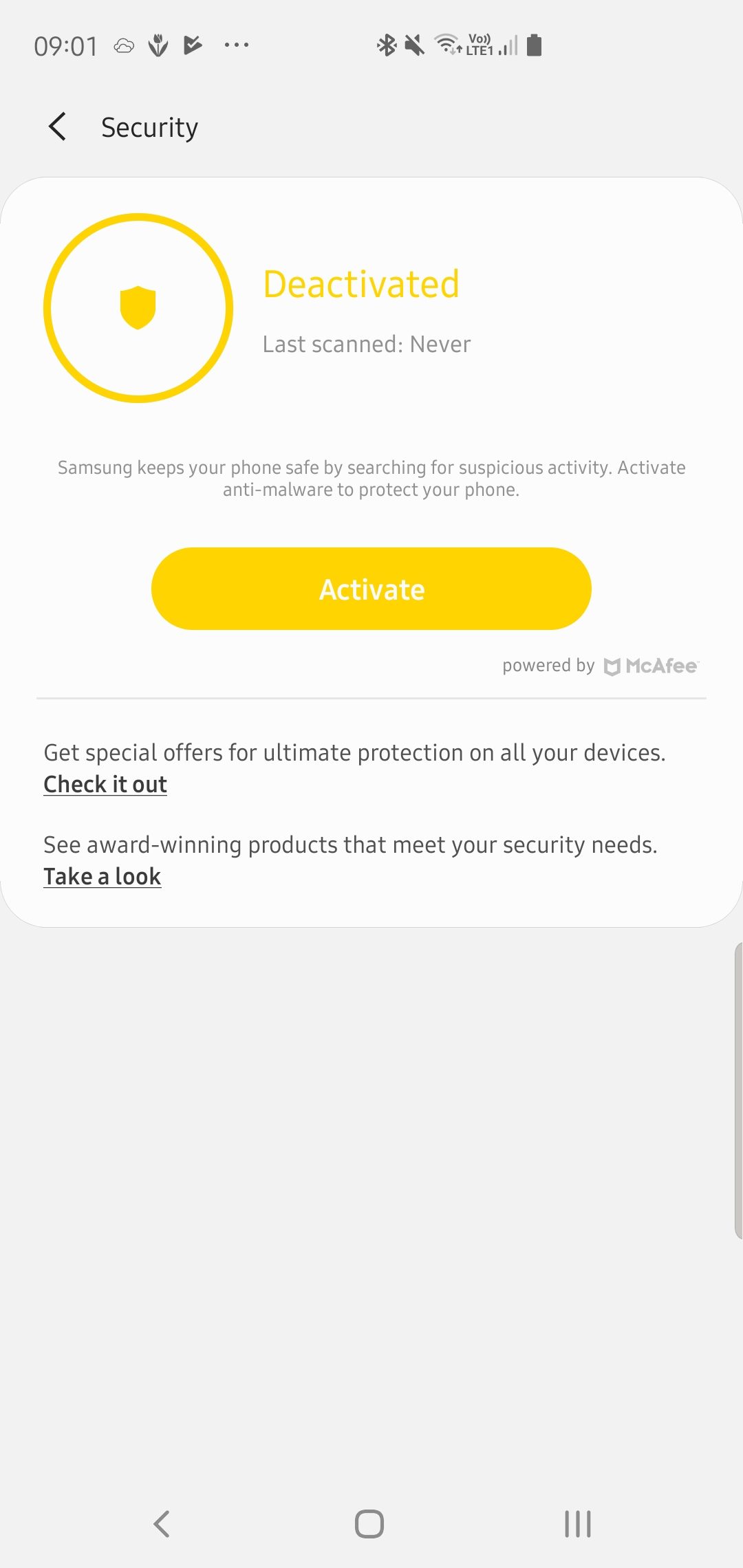 Protection McAfee désactivée Samsung