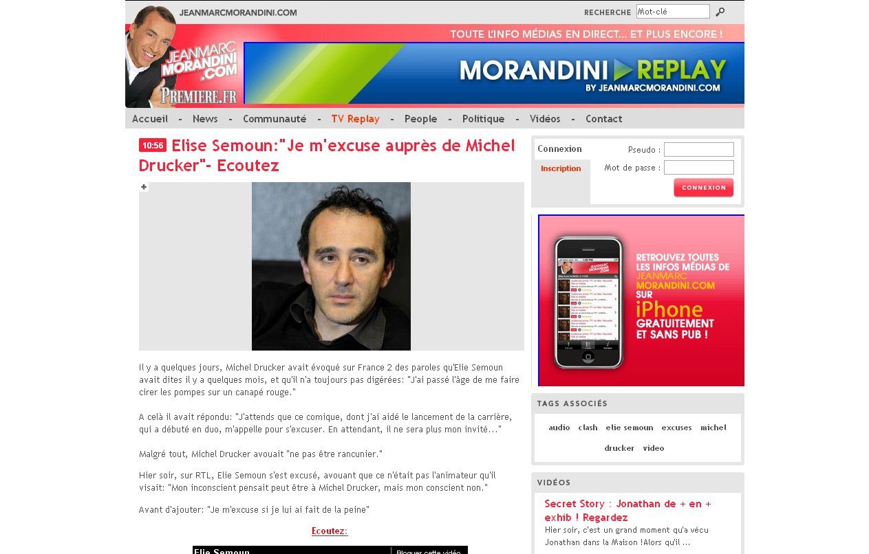 L’article avait pour titre « Élise Semoun:Je m’excuse auprès de Michel Drucker- Écoutez ». Les commentaires n’ont pas tardé à fuser devant cette erreur orthographique sur le nom d’Élie Semoun.