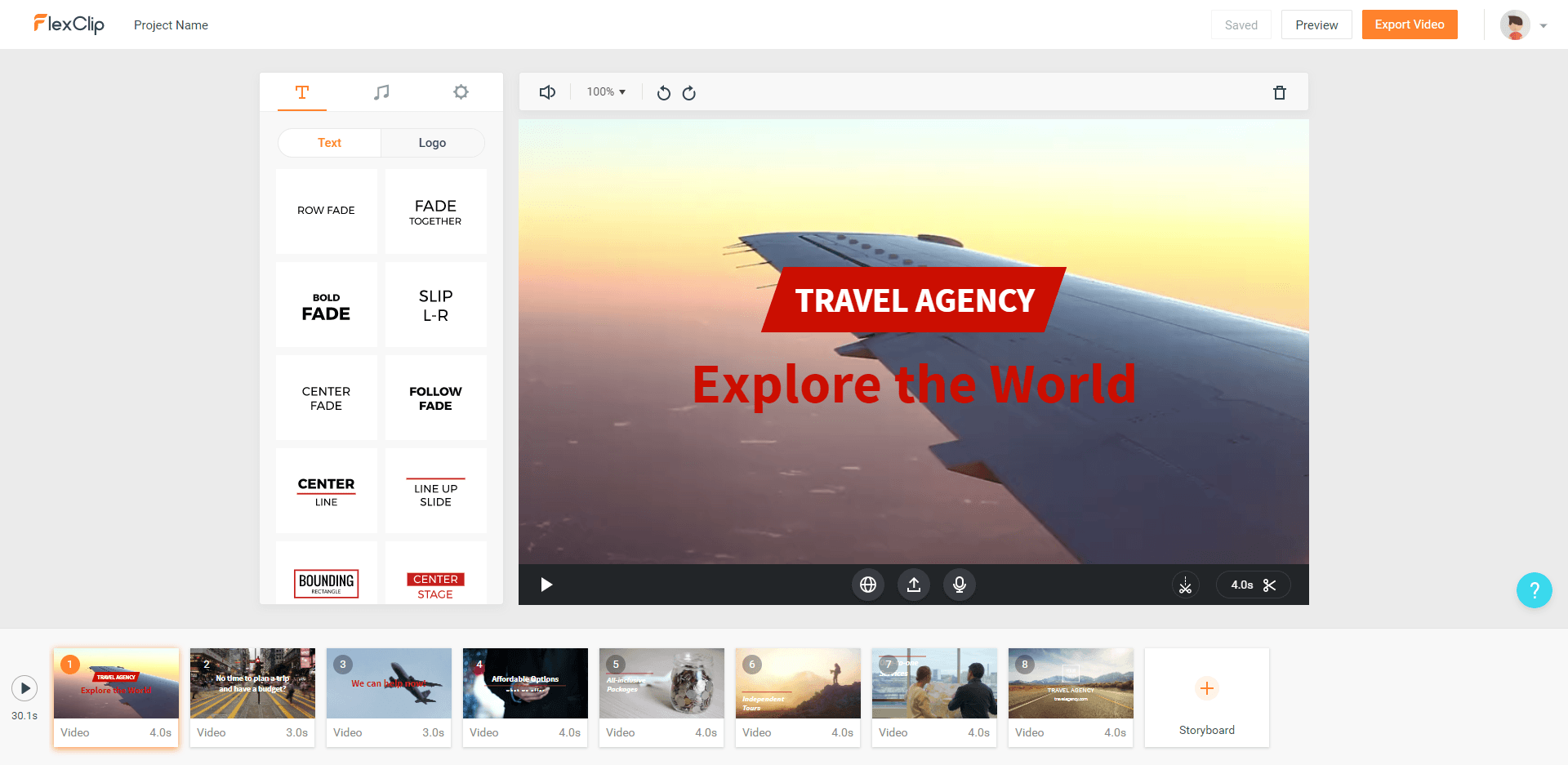 FlexClip Video Maker propose aussi des modèles de vidéos afin de nous assister et de nous guider dans la création de sa vidéo. Basés sur des thèmes génériques tels que « business », « famille », « voyage » et bien d’autres, ils vous proposent une trame et une conception prédéfinie d’une vidéo.
