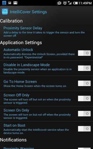 IntelliCover est une application Android permettant d’allumer ou d’éteindre l’écran à l’aide du capteur de proximité situé sur le devant de votre smartphone. Peut-être vous demandez-vous à quoi cela peut bien servir ? A éviter d’user le bouton Power de votre smartphone ? Pas du tout ! Si vous possédez une protection du type « Flip Cover » de Samsung, avec un rabat, cette application trouve toute son utilité !