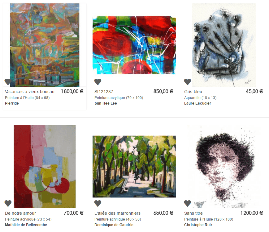Concernant le budget, il y en a pour toutes les bourses : à partir de 45€, vous pouvez acquérir une oeuvre unique réalisée par un artiste. Les prix peuvent monter haut également ! Vous pouvez trouver des œuvres à 3000 €, tout dépend de la technique de création, du type d’oeuvre et de sa taille.