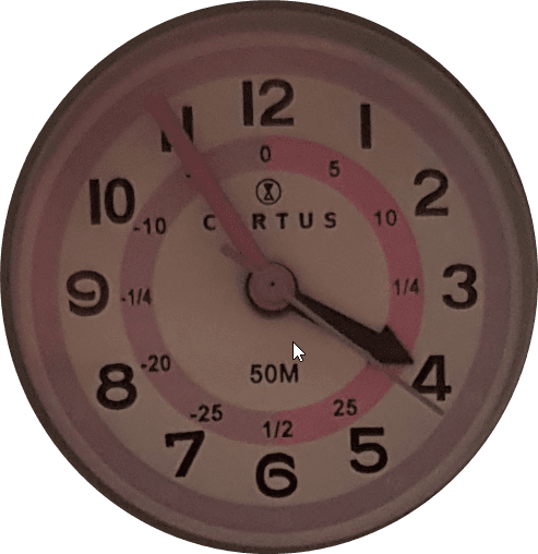 Au niveau du cadran, on retrouve les traditionnelles aiguilles indiquant l’heure, les minutes et les secondes sur un cadran à fond blanc avec les numéros des heures écrits en noir. Un cercle bicolore composés de deux demi-cercles aide l’enfant à identifier l’heure plus facilement en indiquant les intervalles de minutes par pas de 5 minutes, mais aussi la précision des quarts et demies heures, et également les notions de -5, -10, -1/4, etc …