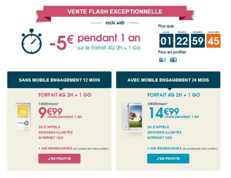 Pour une durée limitée, Bouygues Télécom propose son forfait 4G 1Go + 2h en promotion jusqu’à vendredi ! Cette vente flash exceptionnelle ne dure plus que 24h !