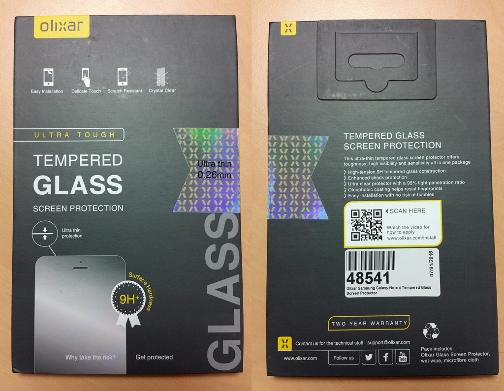 Unboxing de la protection d’écran pour Samsung Galaxy Note 4 Olixar en verre trempé