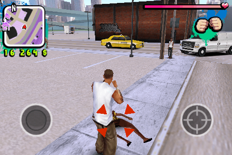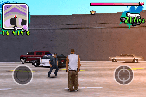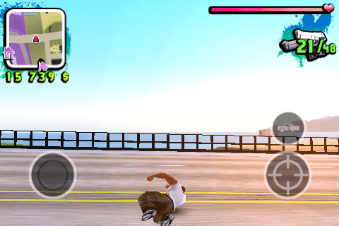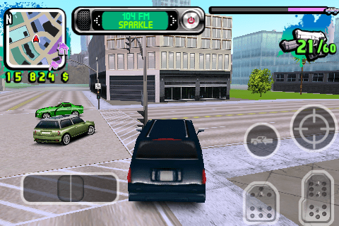 Les déplacements peuvent s’effectuer de plusieurs manières configurables dans le menu de jeu. A pied, un joystick situé à gauche permet de marcher ou de courir dans toutes les directions. En véhicule, deux pédales situées à droite permettent d’accélérer et de freiner ou reculer. Sur la gauche, un volant est symbolisé et permet de tourner.