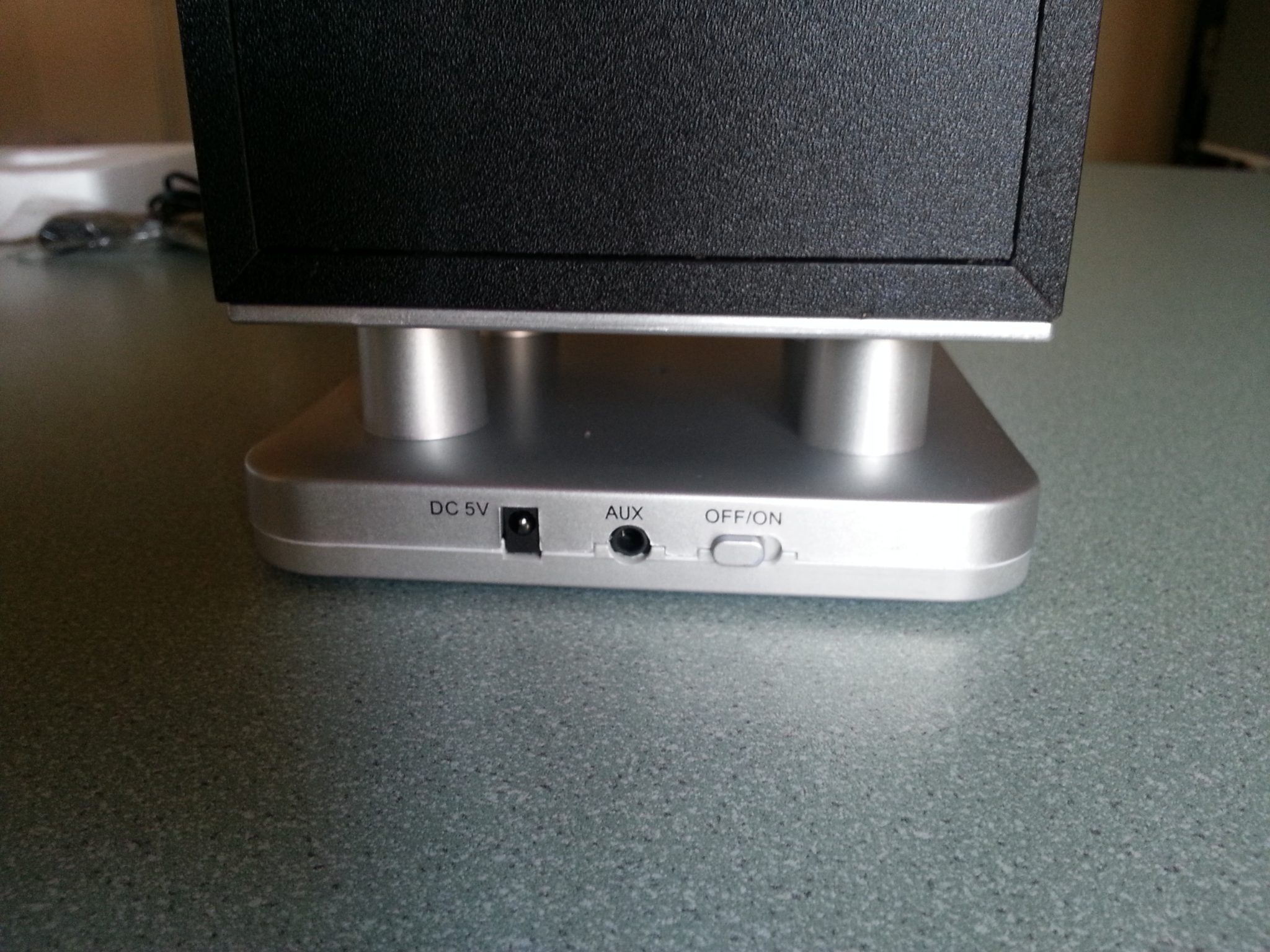 A l’arrière du pied, on retrouve un bouton On/Off, la prise secteur et la prise jack.